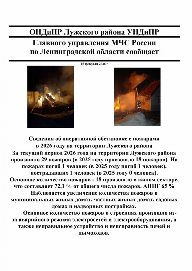 ОНДиПР Лужского района УНДиПР Главного управления МЧС России по Ленинградской области сообщает